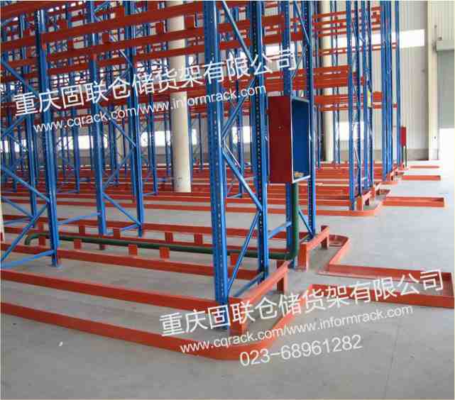 窄巷式貨架安裝后有高約200MM的導軌(導軌可在土建時做好,也可在安裝貨架時用做好的護板做)做為叉車的引導系統,減少叉車司機因人為因素對貨架產生的危險。