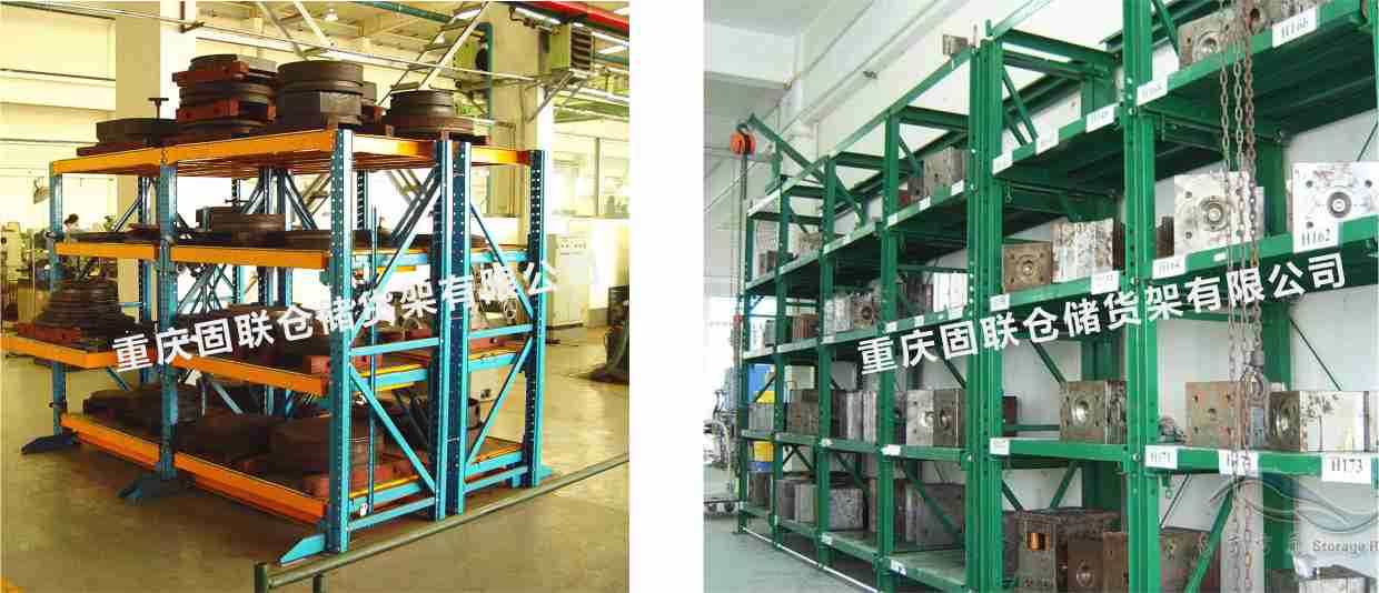 抽屜式貨架主要用于存放各類模具,該貨架除頂層外,其余各層都可拉出,以便于行車吊運。抽屜板底部設有滾輪軌道,抽屜板承載后仍能自由的拉動。 滾輪軌道是用模具一體成型,精度極高,有極高裝配精度,所以滾輪使用壽命大大延長并且使用時拉出或推入很省力。